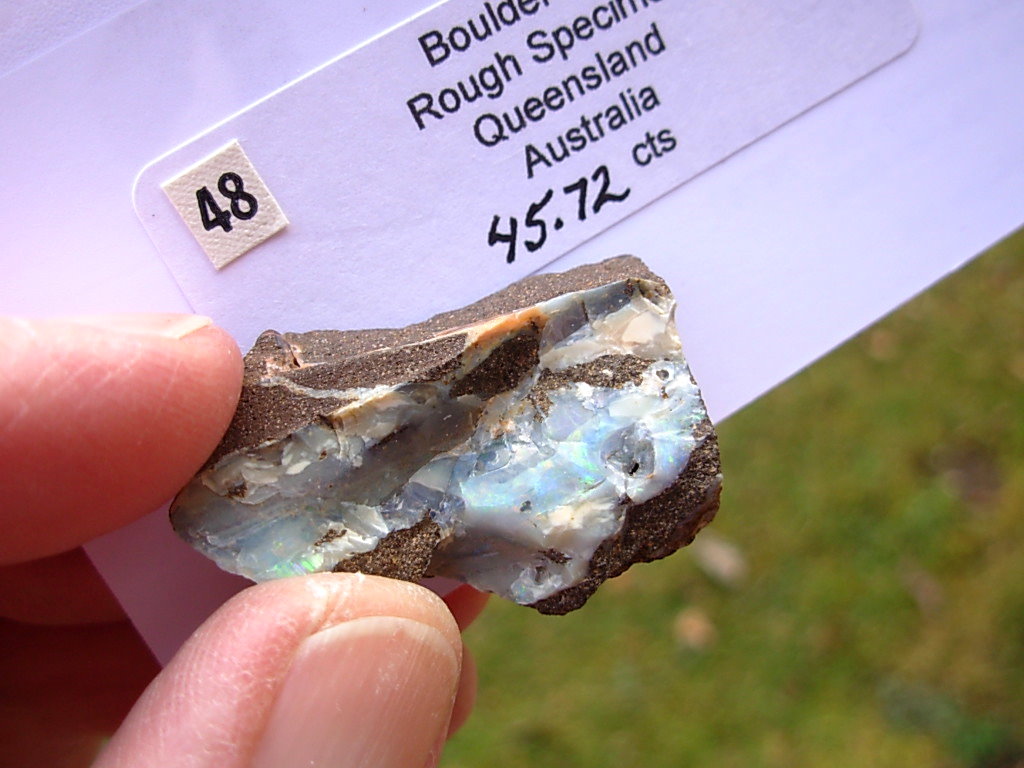 Rough specimen of Boulder Opal in Ironstone matrix from the Opal Fields in Queensland, Australia. This rare find is from the E&L Roth Collection