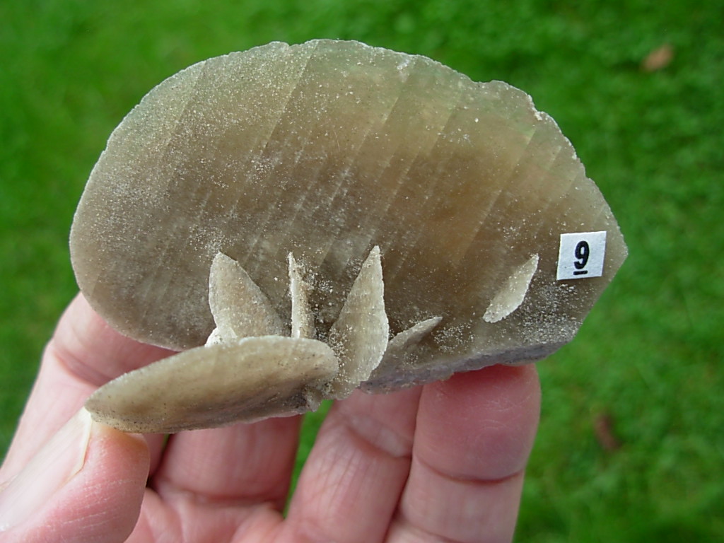 Beautiful Selenite Desert Rose blade cluster from Mexico. It is an amazing display of artistic mixture of small to large plate formations. This piece shows the golden selenite color bladed crystals with an added feature of a little grey/white sand stalagmite that formed on the plate.